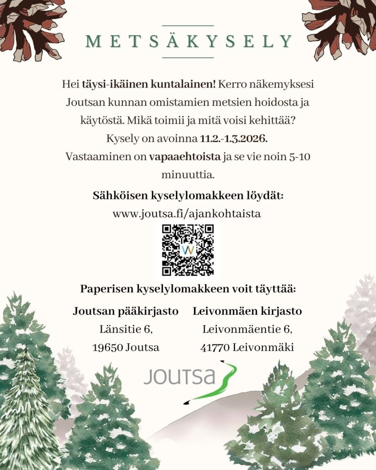 Hei täysi-ikäinen kuntalainen! Kerro näkemyksesi Joutsan kunnan omistamien metsien hoidosta ja käytöstä. Mikä toimii ja mitä voisi kehittää? Kysely on…