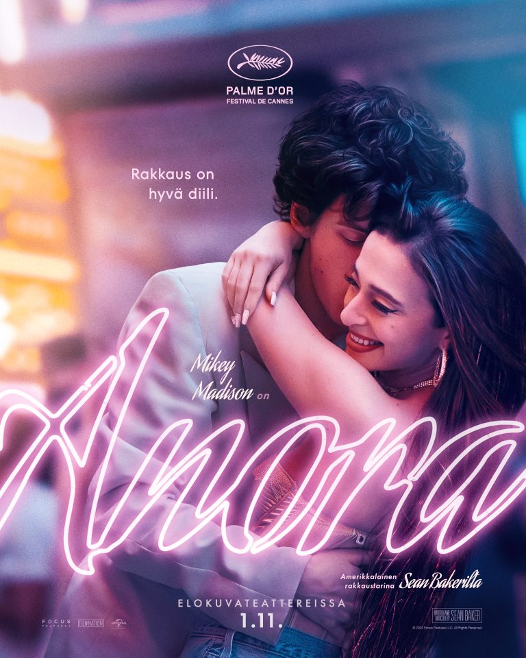 ”Anora on ilmiömäinen viiden tähden komedia!” (HS) Anora, nuori seksityöntekijä Brooklynista, saa tilaisuuden kokea tuhkimotarinan, kun hän tapaa ja päätyy yllättäen naimisiin oligarkin pojan kanssa.