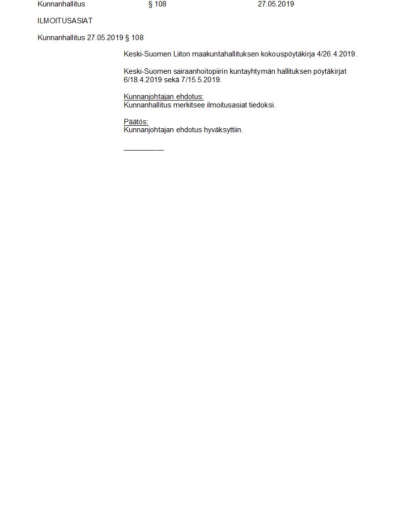 Pöytäkirja 27.05.2019/Pykälä 108