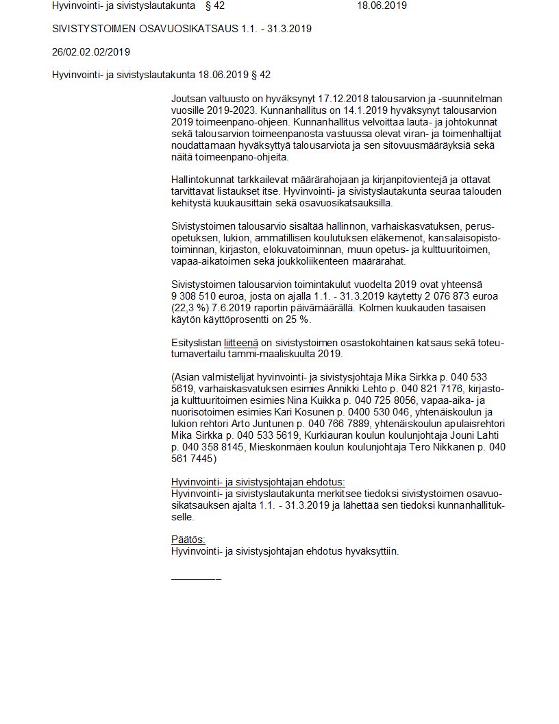 Pöytäkirja 18.06.2019/Pykälä 42