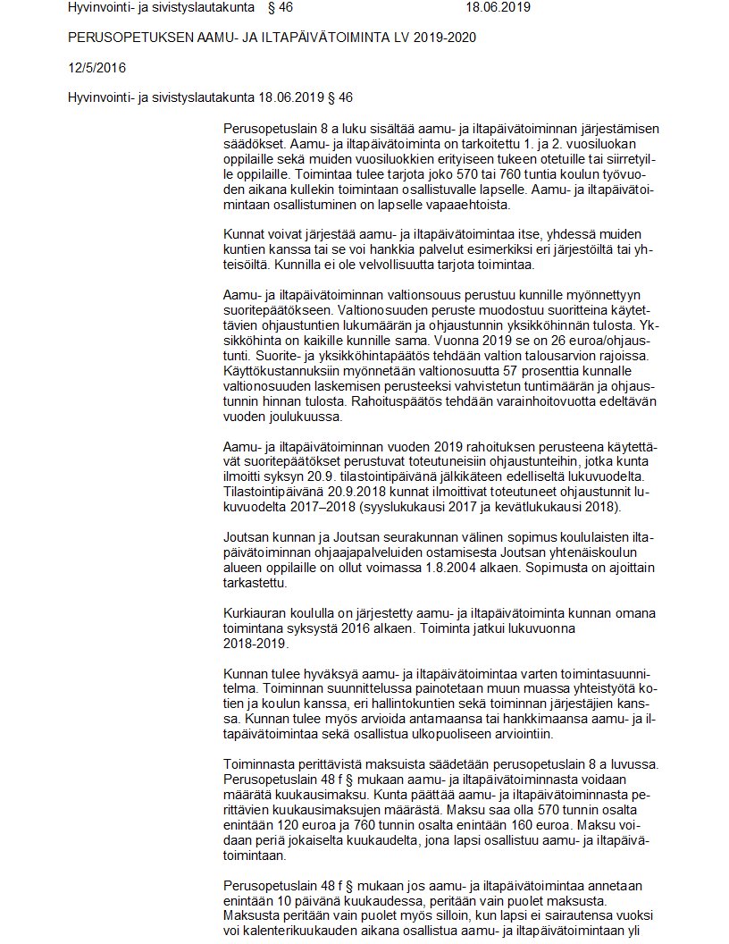 Pöytäkirja 18.06.2019/Pykälä 46