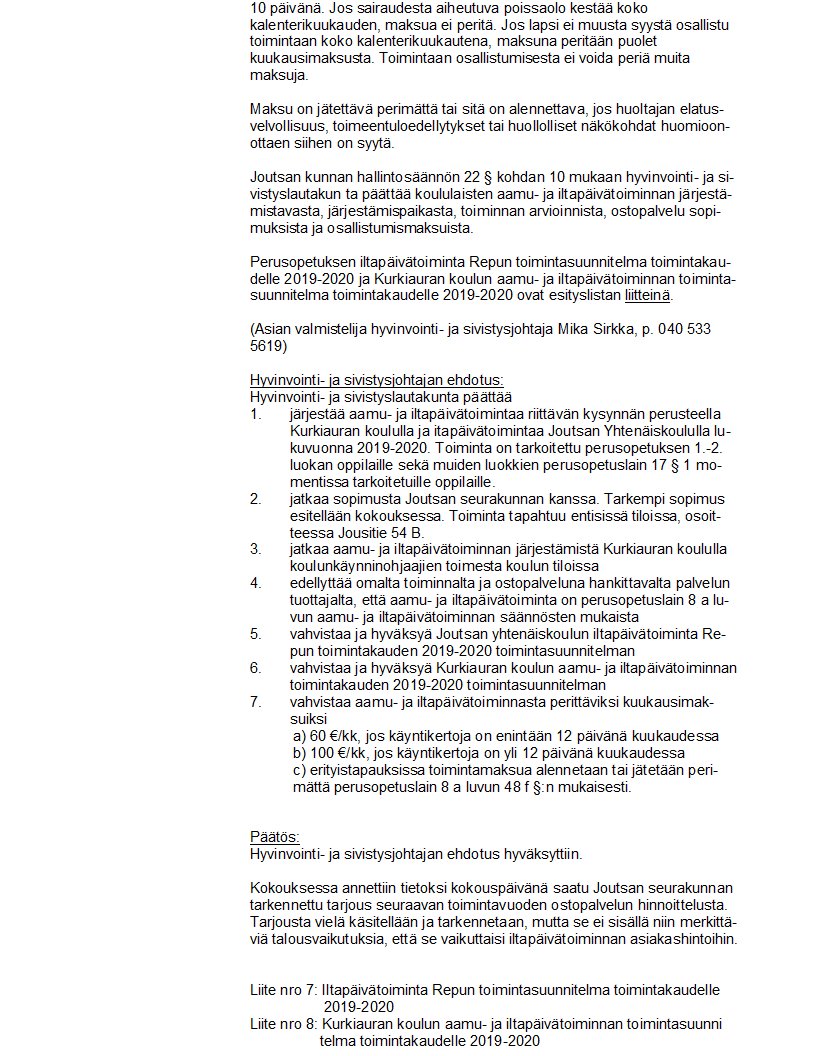 | Liite 13 | KURKIAURAN KOULUN AAMU- JA ILTAPÄIVÄTOIMINNAN TOIMINTASUUNNITELMA LV 2019-2020 |