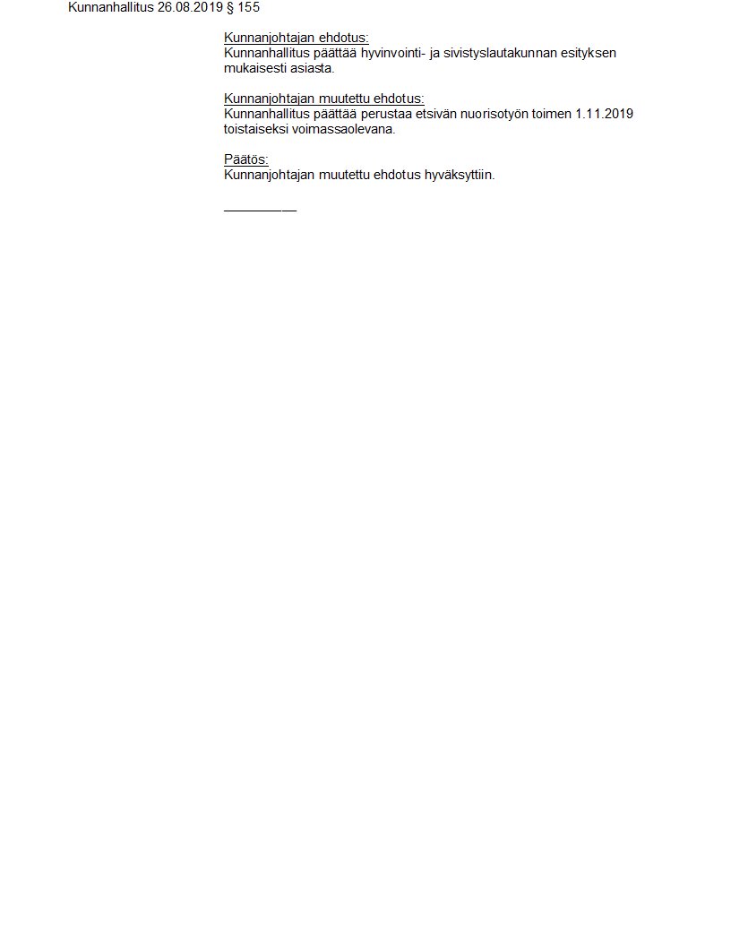Pöytäkirja 26.08.2019/Pykälä 155