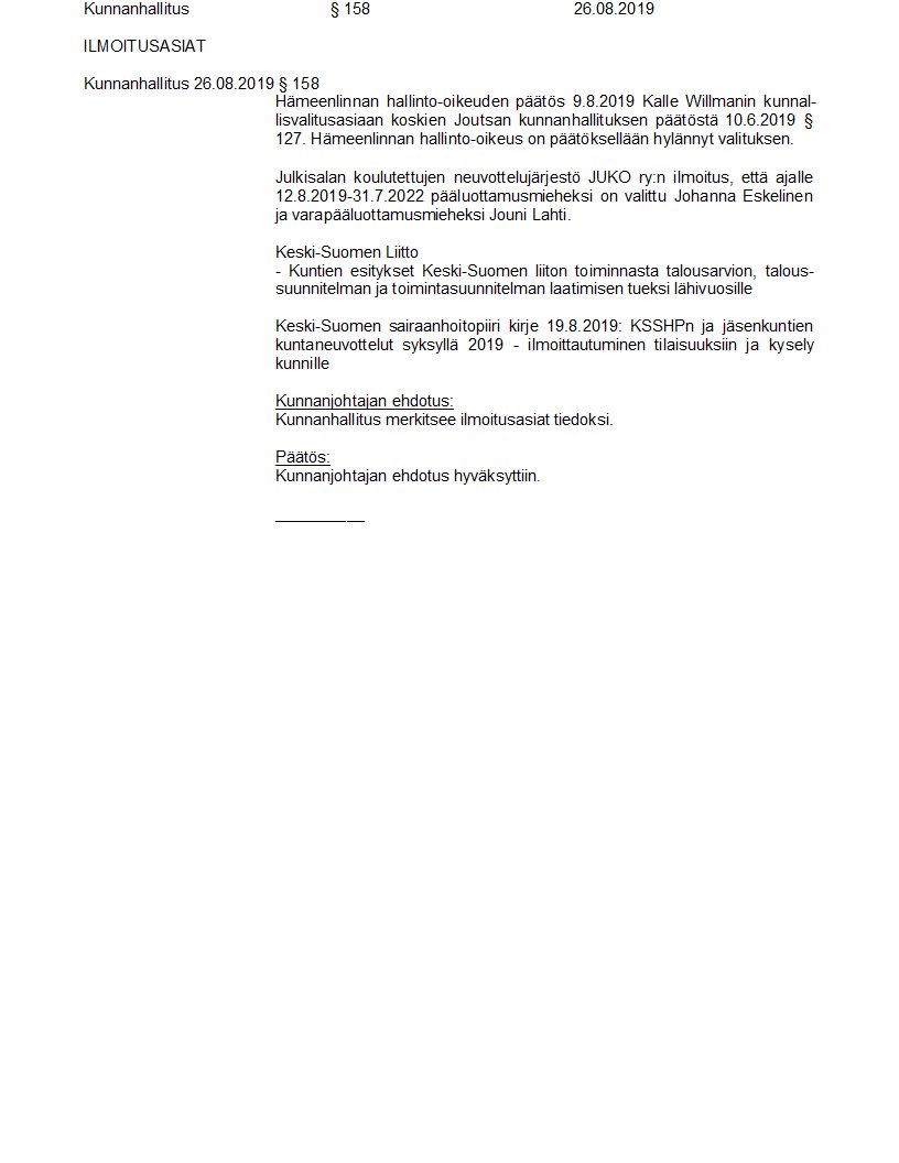 Pöytäkirja 26.08.2019/Pykälä 158