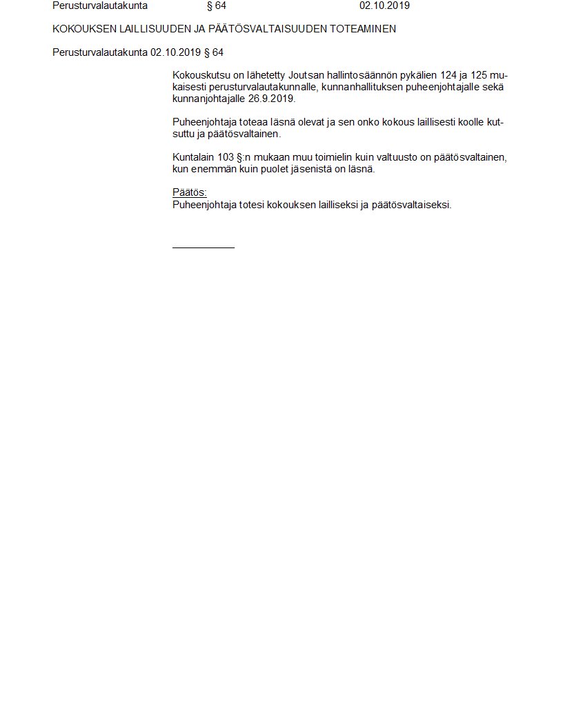 Pöytäkirja 02.10.2019/Pykälä 64