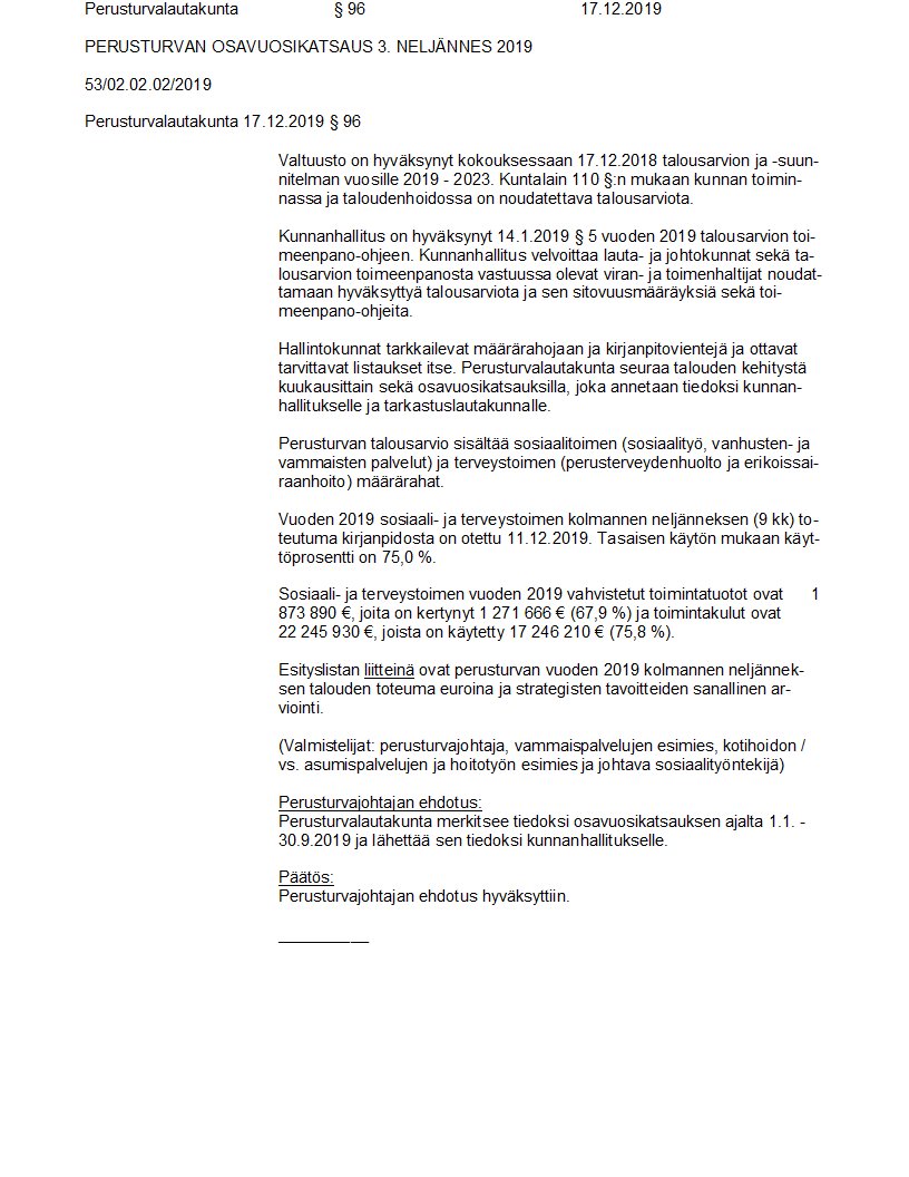 Pöytäkirja 17.12.2019/Pykälä 96