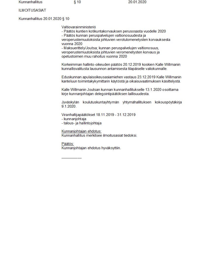 Pöytäkirja 20.01.2020/Pykälä 10