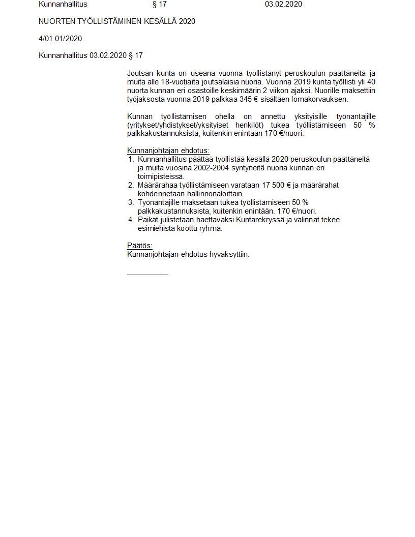 Pöytäkirja 03.02.2020/Pykälä 17