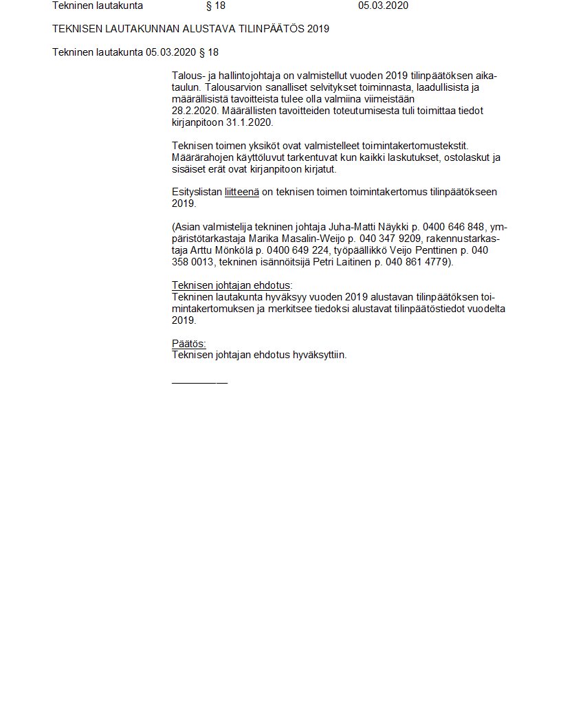 Pöytäkirja 05.03.2020/Pykälä 18