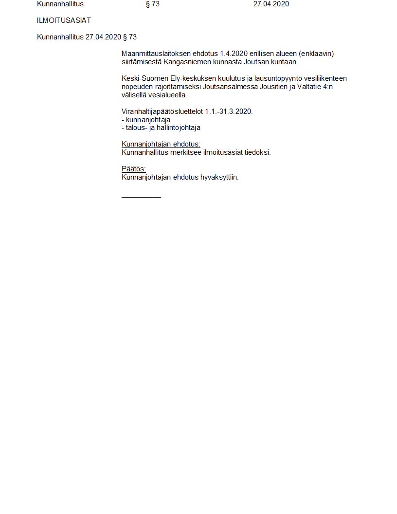 Pöytäkirja 27.04.2020/Pykälä 73