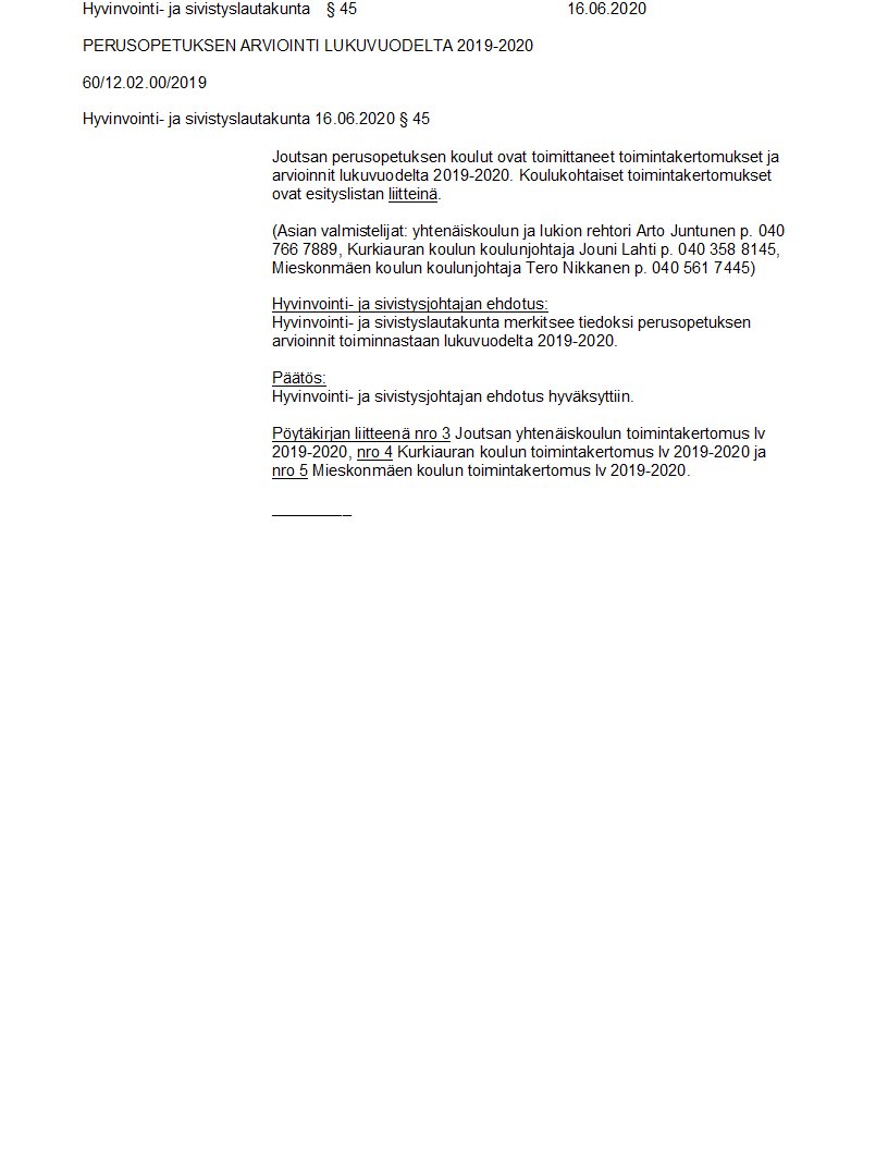 | Liite 3 | JOUTSAN YHTENÄISKOULUN TOIMINTAKERTOMUS LV 2019-2020 | |