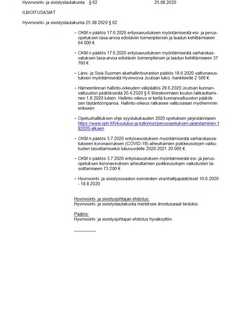 Pöytäkirja 25.08.2020/Pykälä 62