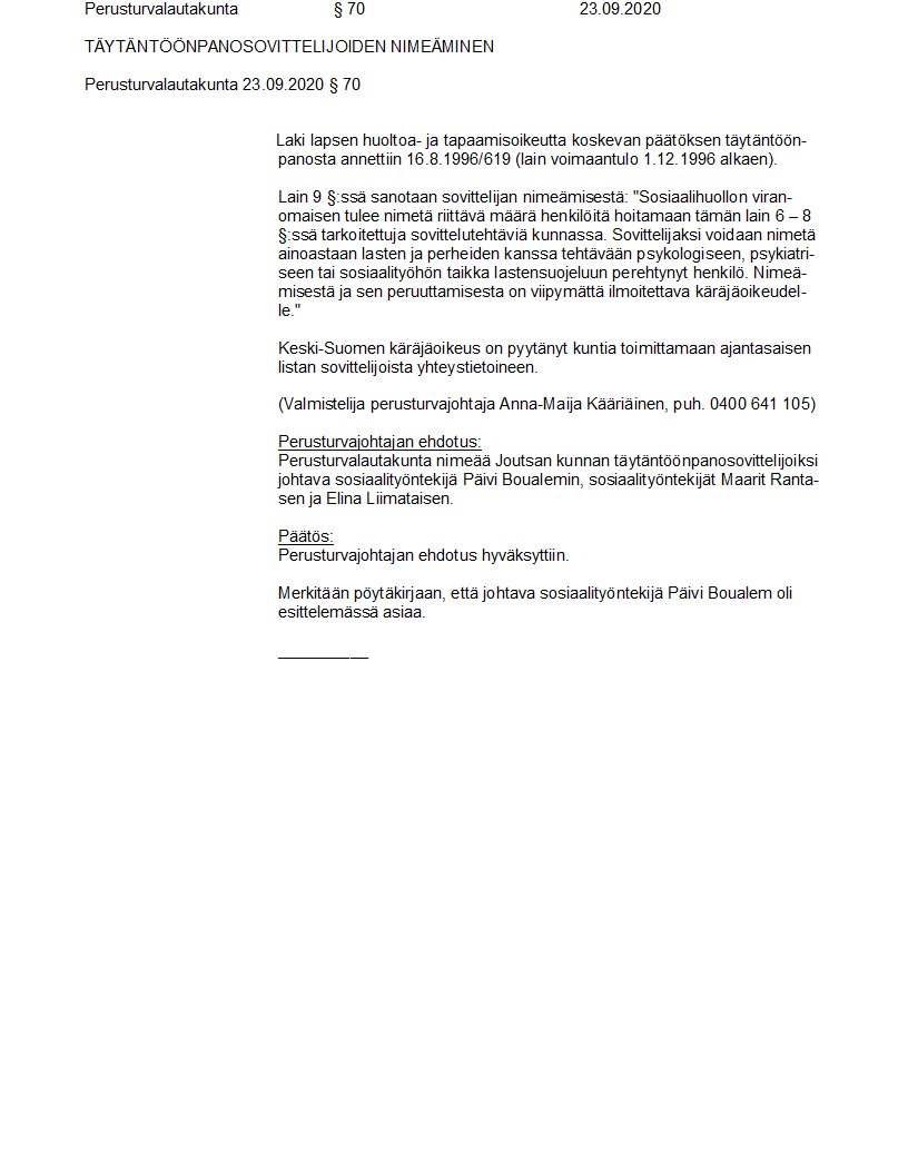 Pöytäkirja 23.09.2020/Pykälä 70