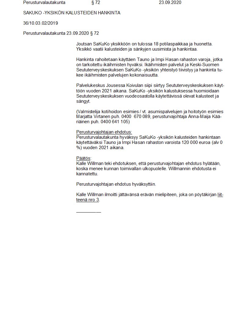 Pöytäkirja 23.09.2020/Pykälä 72