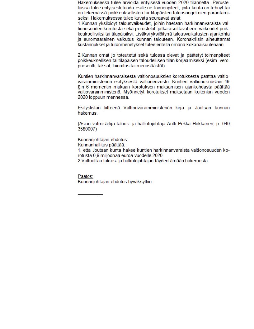 | KUNTIEN HARKINNANVARAISEN VALTIONOSUUDEN KOROTUKSEN HAKEMINEN VUONNA 2020 | |