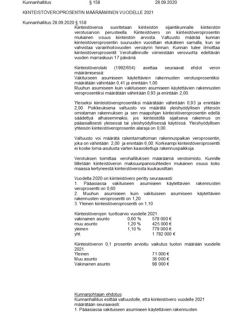 Pöytäkirja 28.09.2020/Pykälä 158