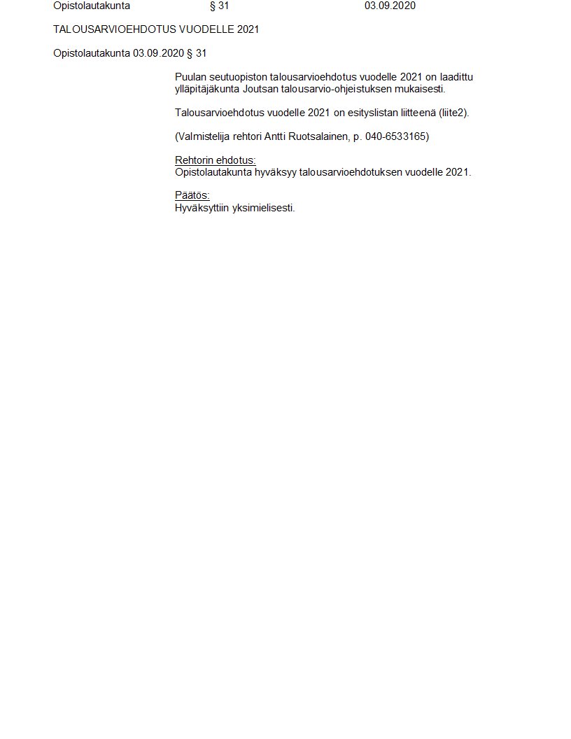 Pöytäkirja 03.09.2020/Pykälä 31