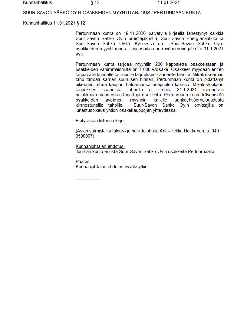 Pöytäkirja 11.01.2021/Pykälä 12