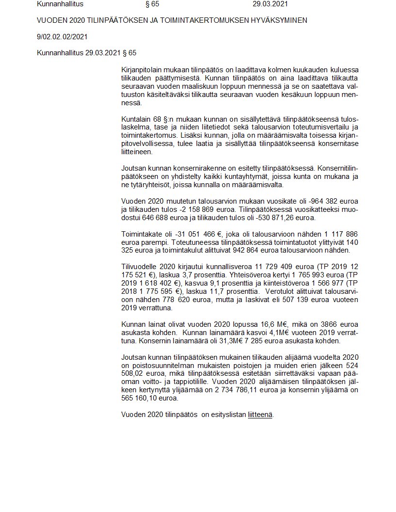 Pöytäkirja 29.03.2021/Pykälä 65