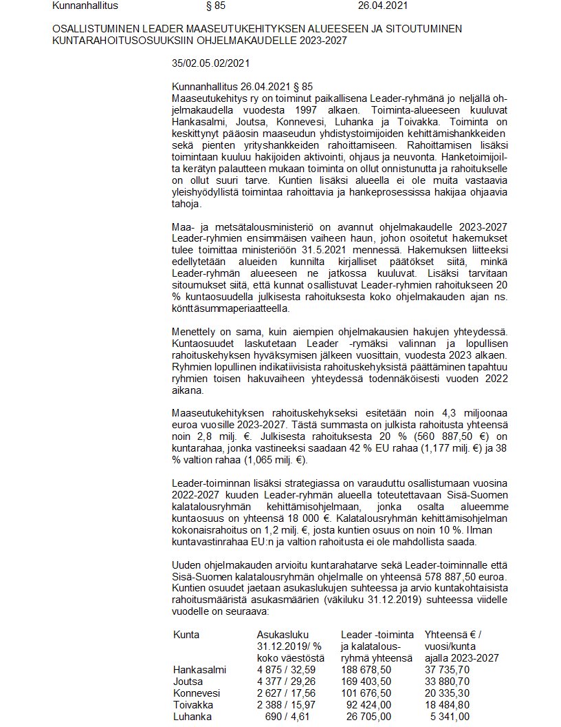 Pöytäkirja 26.04.2021/Pykälä 85