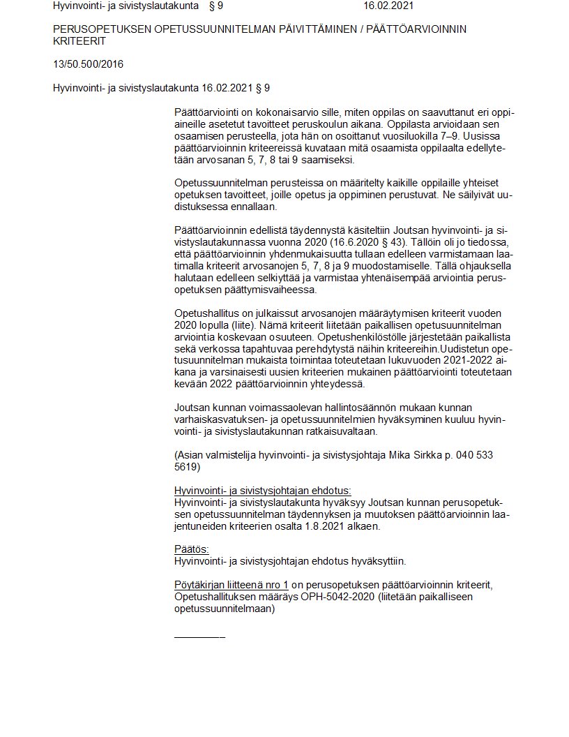 Pöytäkirja 16.02.2021/Pykälä 9
