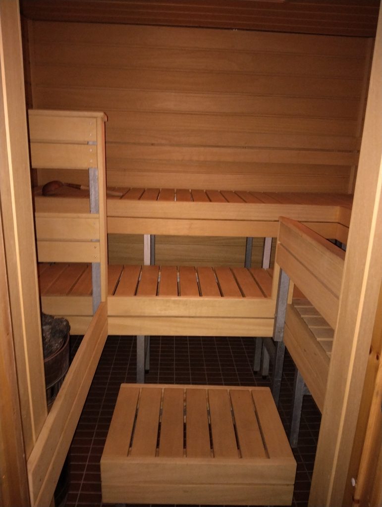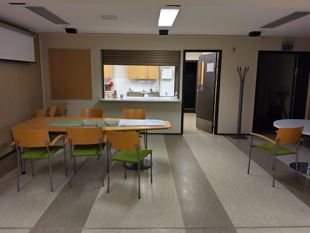 Kokoontumistila ryhmille, kokouspaikka, saunaillat tms. Kellarikerroksen tiloissa eteinen naulakoineen, 2xwc, iso kokoustila, keittiö ja sauna pukuhuoneineen.