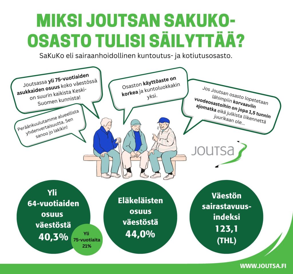 Aikaisemmin myös SaKuKo-nimellä tunnettu Joutsan vuode- ja kuntoutusosasto toimii uusissa, vuonna 2022 valmistuneissa tiloissa. Joutsan kunnanhallitus painotti 27.10. antamassaan lausunnossa, että Joutsan vuodeosastoa ei voi lopettaa koska vuodeosasto vastaa alueellisena yksikkönä koko Itä-Päijänteen alueen perusterveydenhuollosta. Osaston lakkauttamisen myötä Joutsasta vähennettäisiin myös yksi lääkäri.