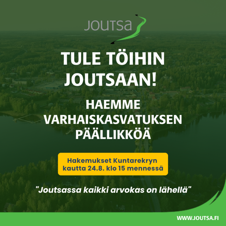 Tule varhaiskasvatuksen päälliköksi Joutsaan – haku päättyy to 24.8.