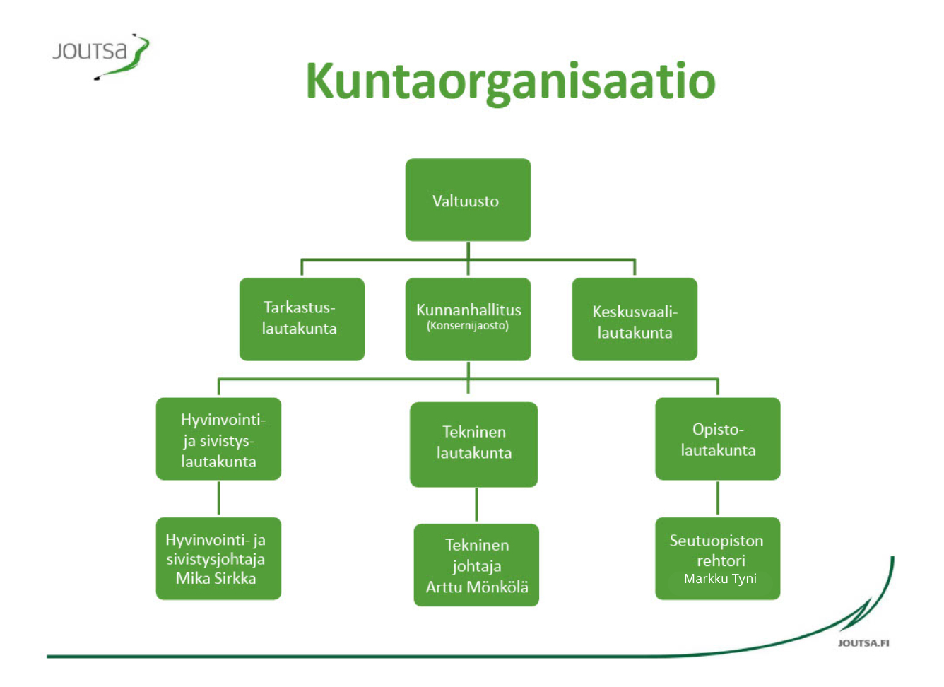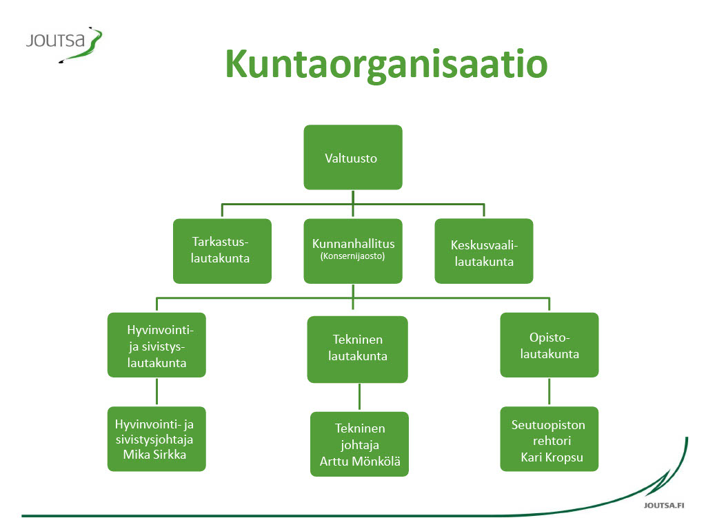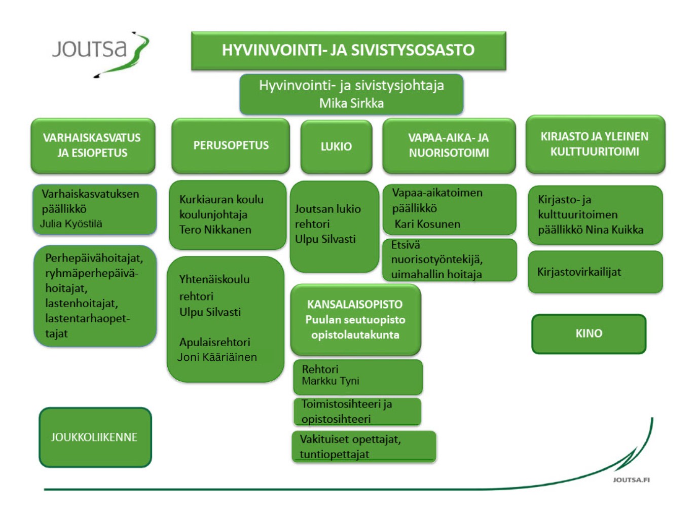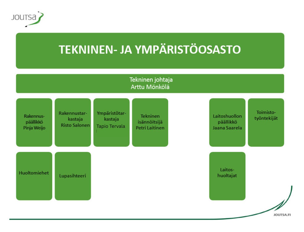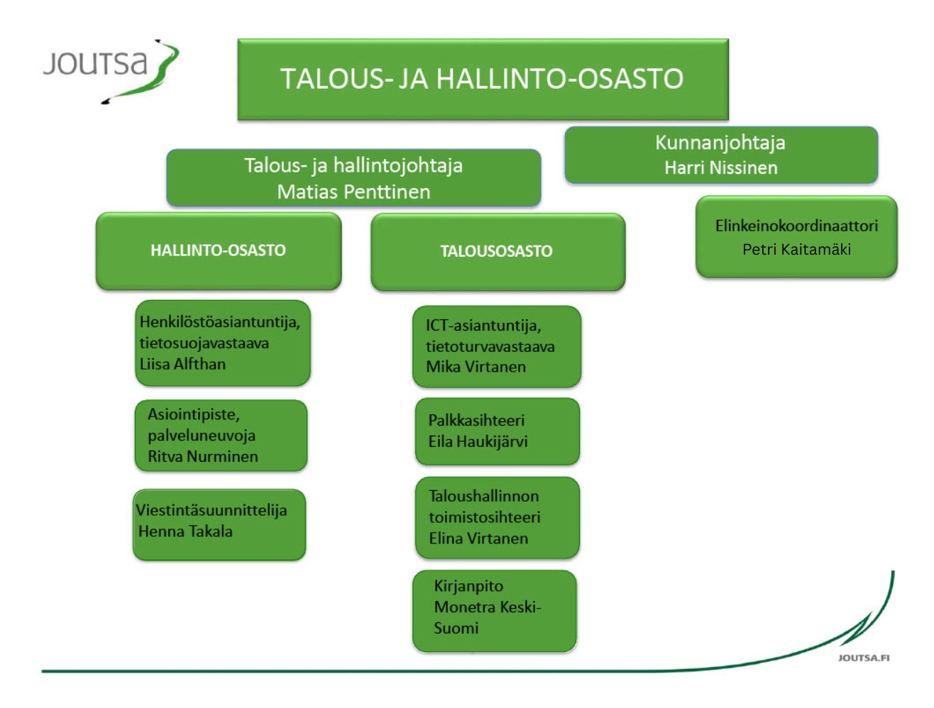 Kunnan henkilöstön päävastuualueisiin pohjautuva osastojako on seuraava: