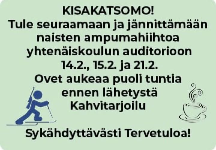 Naisten ampumahiihdon kisakatsomo. Tule mukaan yhteiseen kisakatsomoon jännittämään!