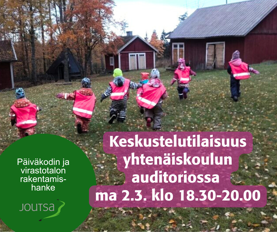 Uuden päiväkodin ja virastotalon rakennushanke on herättänyt runsaasti erilaisia mielipiteitä. Järjestämme aiheesta keskustelutilaisuuden kuntalaisille ensi maanantaina eli 2.3.2026. Tilaisuus järjestetään Joutsan yhtenäiskoulun auditoriossa klo 18.30 – 20.00. Tervetuloa keskustelemaan!