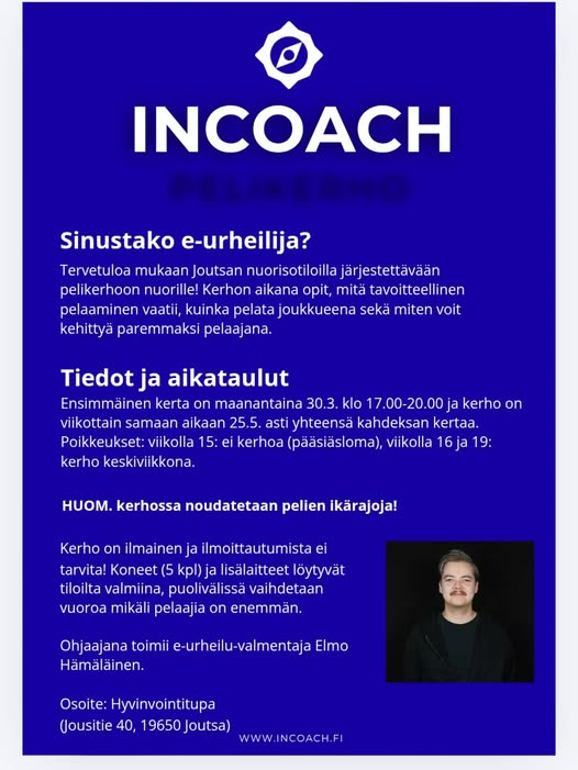 Tervetuloa mukaan Joutsan nuorisotiloilla järjestettävään pelikerhoon nuorille! Kerhon aikana opit, mitä tavoitteellinen pelaaminen vaatii, kuinka pelata joukkueena sekä miten voit kehittyä paremmaksi pelaajana.