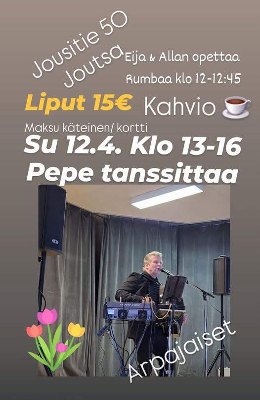Päivätanssit Joutsan työväentalolla. Musiikista vastaa Pepe Niilahti.