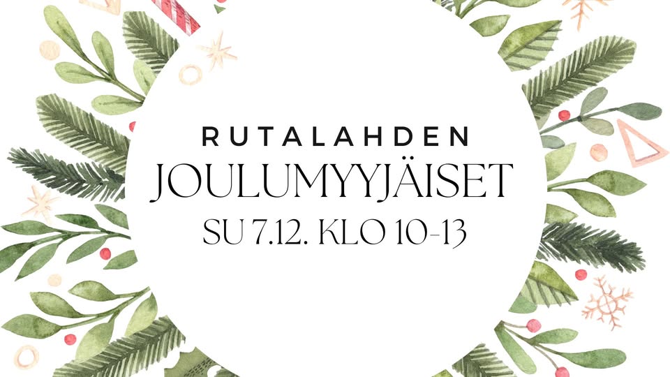 Rutalahden joulumyyjäiset järjestetään 7.12.2024 klo 10-13 Nuorisoseurantalo Suojarinteellä (Vällyhoilontie 32, 41710 Rutalahti).