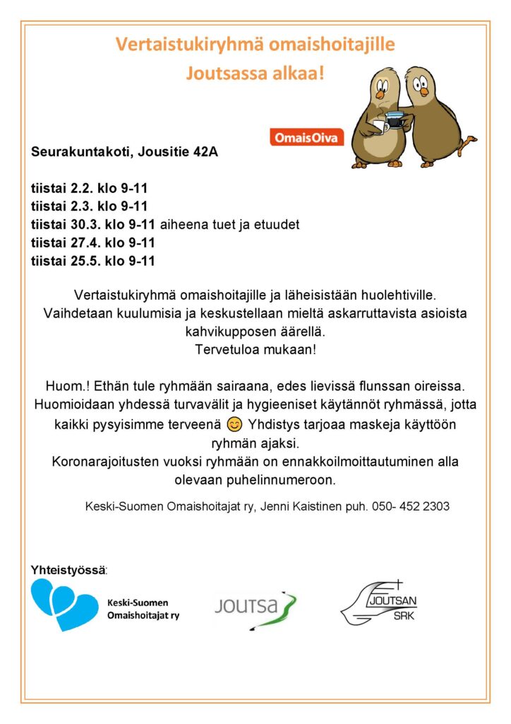 Vertaisryhmä omaishoitajille alkaa Joutsassa